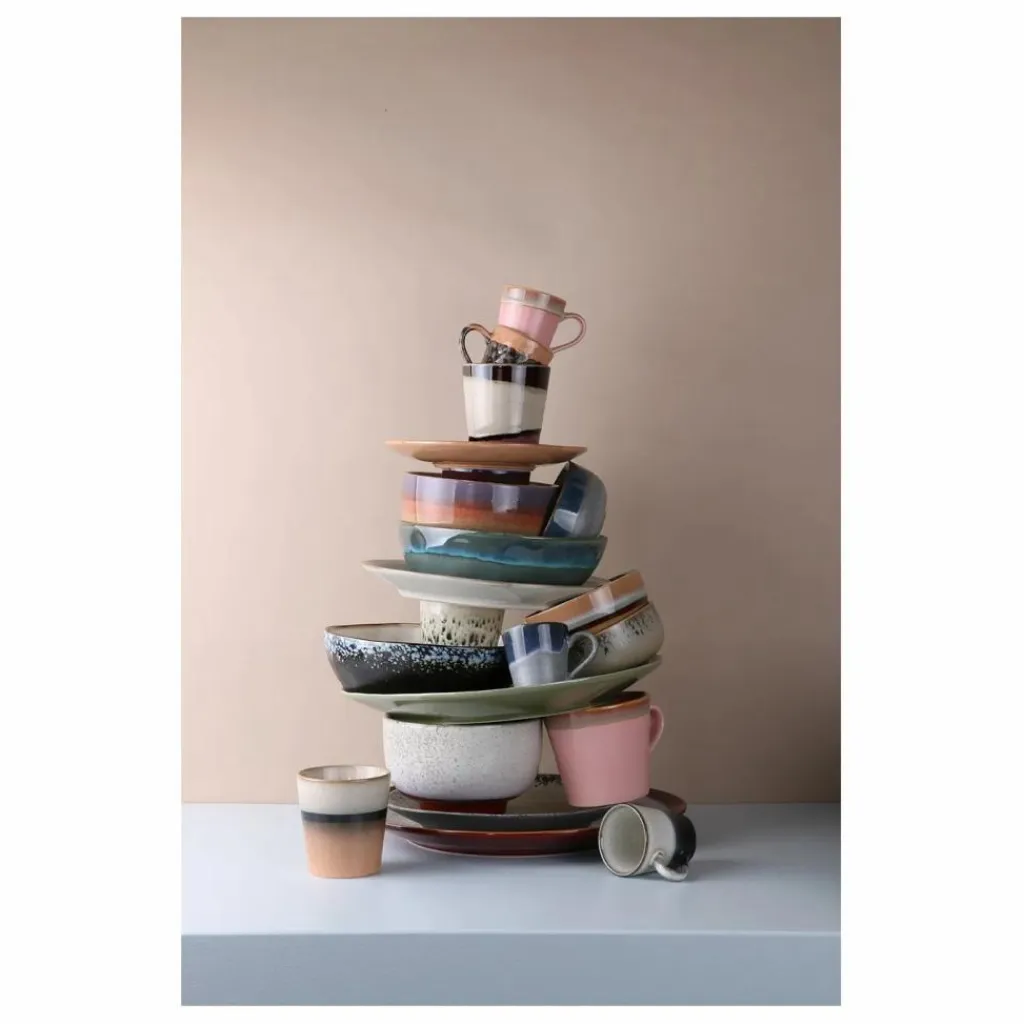 Cette tasse résolument 70’s grâce à ses teintes de couleurs chaudes et sa texture brut est unique en raison de ses finitions à la main. Que vous soyez un amateur de la céramique des années 70 ou un collectionneur de longue date, cette tasse saura trouver une place dans votre collection.