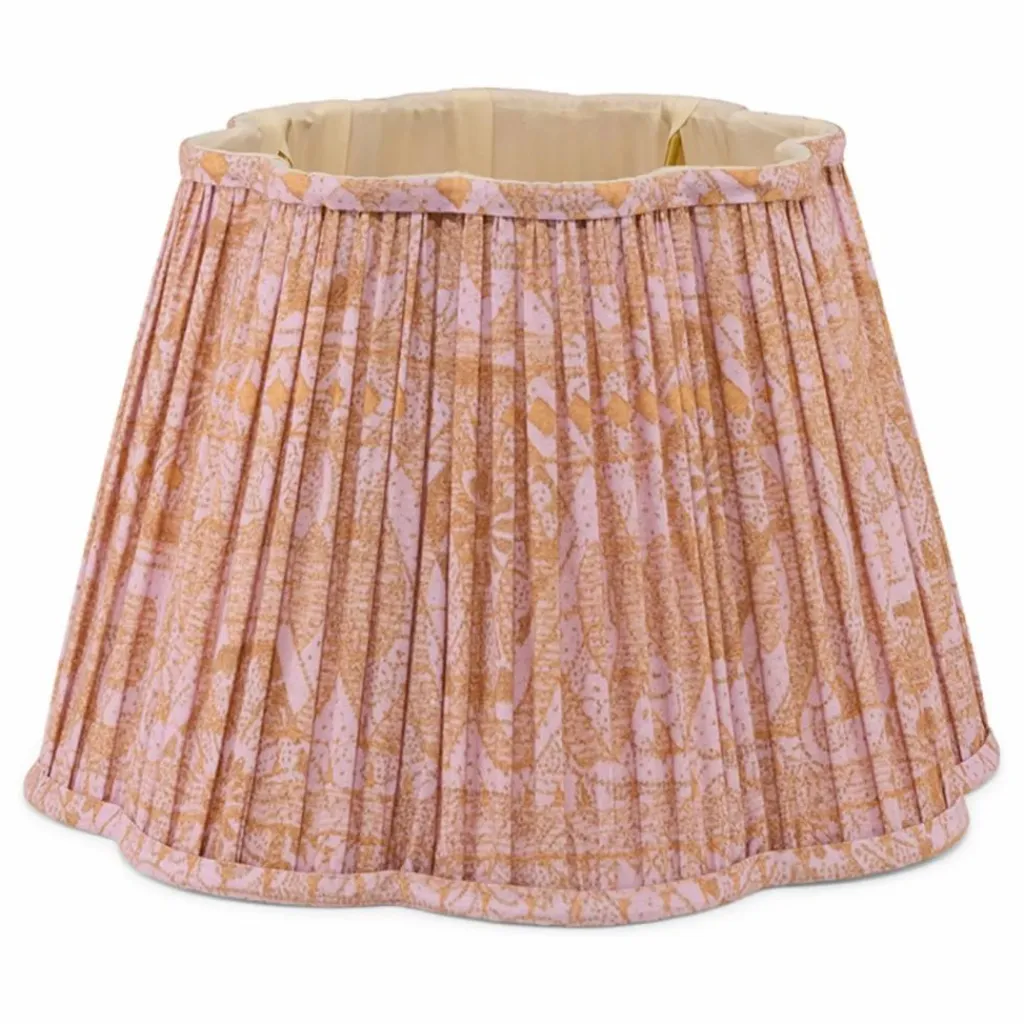 Apportez une touche de charme et de couleur à votre intérieur avec l’abat-jour Diya à bords festonnés en coton Aliya Lilas. Fabriqué en coton imprimé à la main, cet abat-jour présente un magnifique design floral rose et orange, parfait pour illuminer les salons, chambres ou chambres d’enfants. Ses bords festonnés ajoutent une touche vintage élégante qui s’associe facilement à toute base de lampe. Fait partie de la Collection Heart Lights, célébrant le savoir-faire artisanal et le design intemporel.
