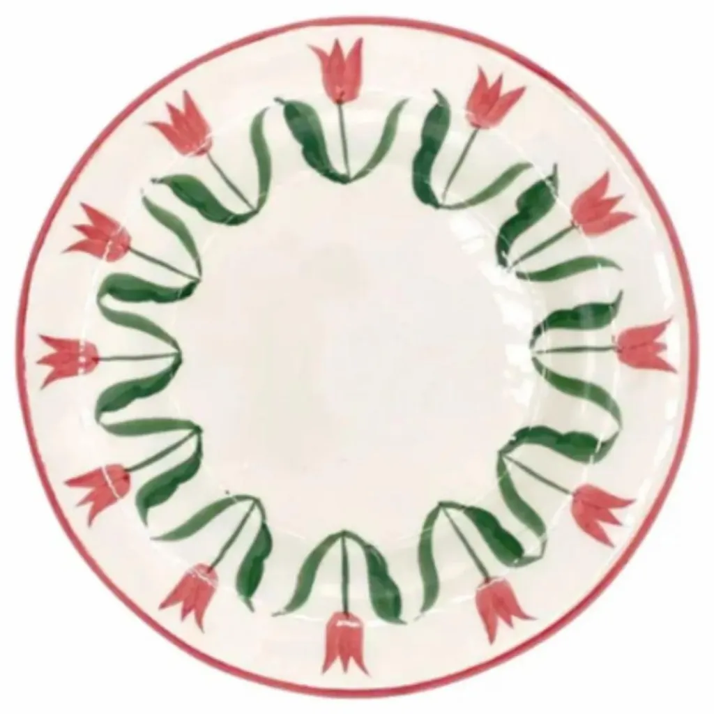 - La petite assiette Fan Fan dévoile ses tulipes rouges peintes à la main, entre graphisme old-school et twist moderne. Elle apporte un vrai souffle joyeux à la table.