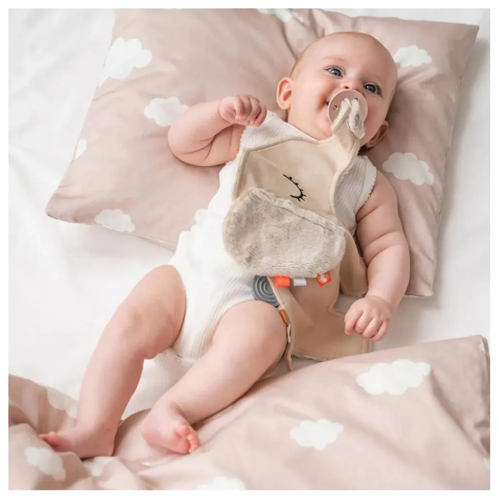 • Avec un clip Velcro pratique pour attacher facilement une sucette et l’avoir ainsi toujours à portée de main