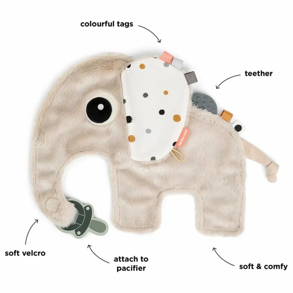 - • Le Doudou attache-sucette en couleur sable en forme d’Elphee est le compagnon idéal pour votre bébé