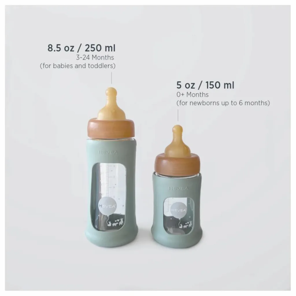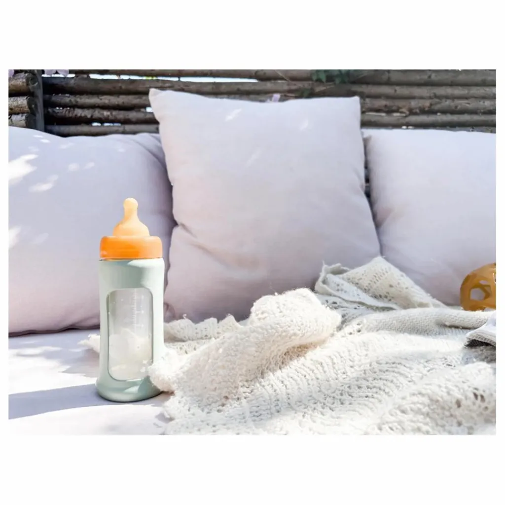 Ce biberon en verre à col large avec housse de protection débit moyen est fabriqué en caoutchouc naturel, l’intérieur de la tétine et du capuchon est moulé pour s’adapter parfaitement au goulot du biberon sans que le lait ne se répande. Les biberons à col large sont particulièrement recommandés pour le lait maternel, car le large col du biberon permet un accès facile au lait.