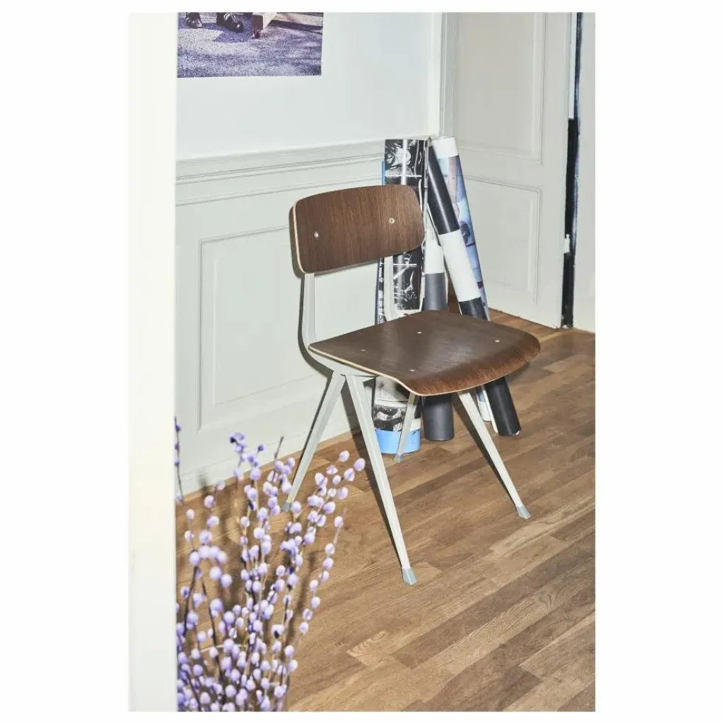 La chaise Result rééditée de son originale créée dans les années 50 par Friso Kramer et Wim Rietveld, a un vrai design rétro qui s’accorde parfaitement avec la table Pyramid. Flexible, légère et robuste, elle offre un vrai confort.