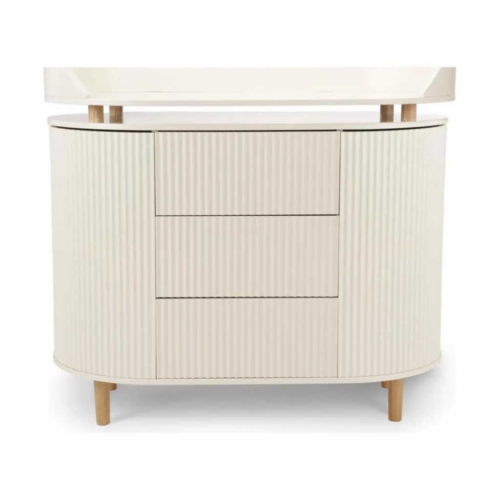 Cette commode au design intemporel offre une solution de rangement polyvalente pour divers espaces, tout en intégrant un système easy touch pour une utilisation pratique. De plus, elle peut facilement se convertir en espace à langer grâce à une table optionnelle sans laisser de traces sur le plateau, offrant ainsi une flexibilité d’utilisation pour accompagner l’évolution des besoins de la maison.
