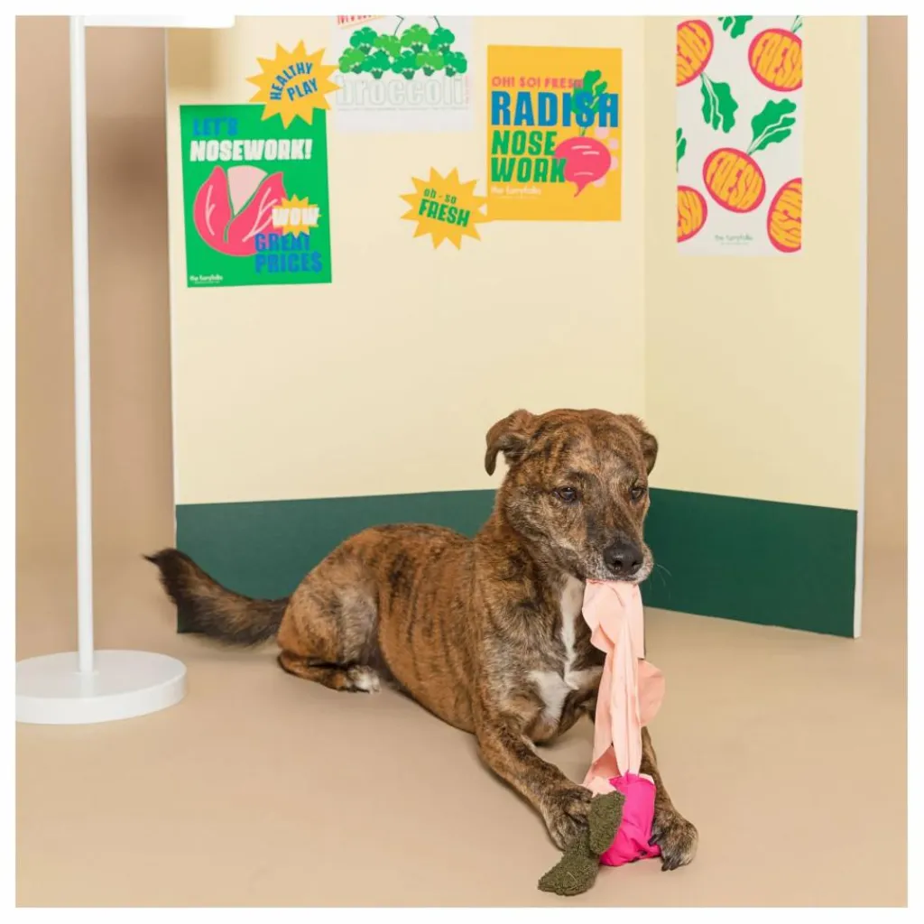 - the furryfolks livre des jouets frais à votre porte Vous cherchez des légumes avec lesquels nos petits compagnons peuvent jouer sainement ? Voici l’irrésistible jouet Radish nosework ! Tout d’abord, retirez le tissu intérieur de la poche à radis. Retirez le tissu intérieur de la poche du radis. Ensuite, cachez des friandises en les enveloppant dans chaque cercle du tissu intérieur. Enfin, remettez le cercle du tissu intérieur avec les friandises dans la poche et donnez-la à nos amis à fourrure. Plus ils joueront avec le jouet, plus ils se sentiront confiants et soulagés du stress.