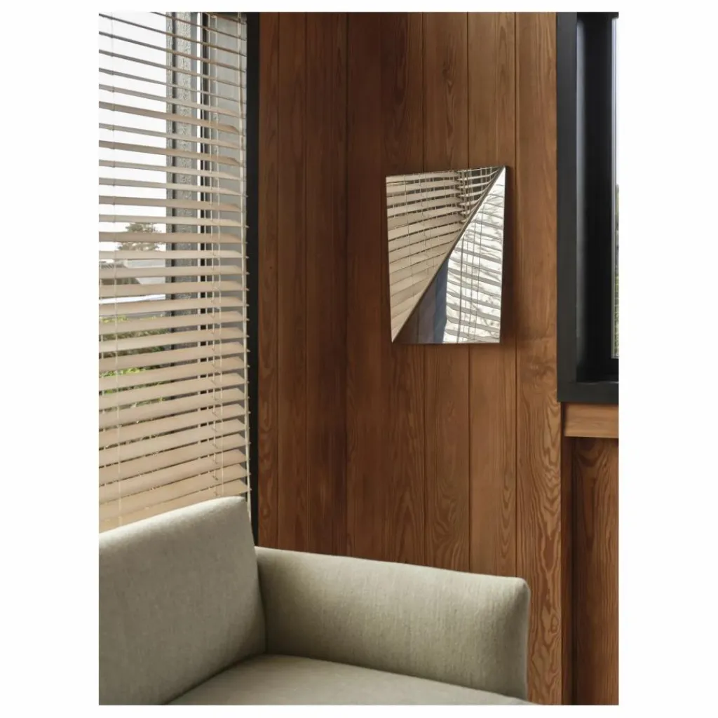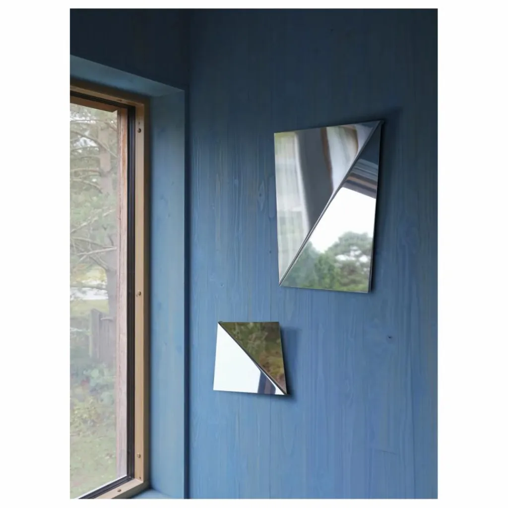 - Fabriqué à partir de deux pièces pliées en acier inoxydable poli miroir, le Gaze Mirror est une structure sculpturale et élégante à fixer au mur. Les surfaces inclinées captent la lumière et l’environnement de manière surprenante, créant un visuel dynamique lorsque vous vous déplacez autour de la pièce. Disponible en deux tailles, Gaze ajoute un accent subtil mais percutant à n’importe quel espace.