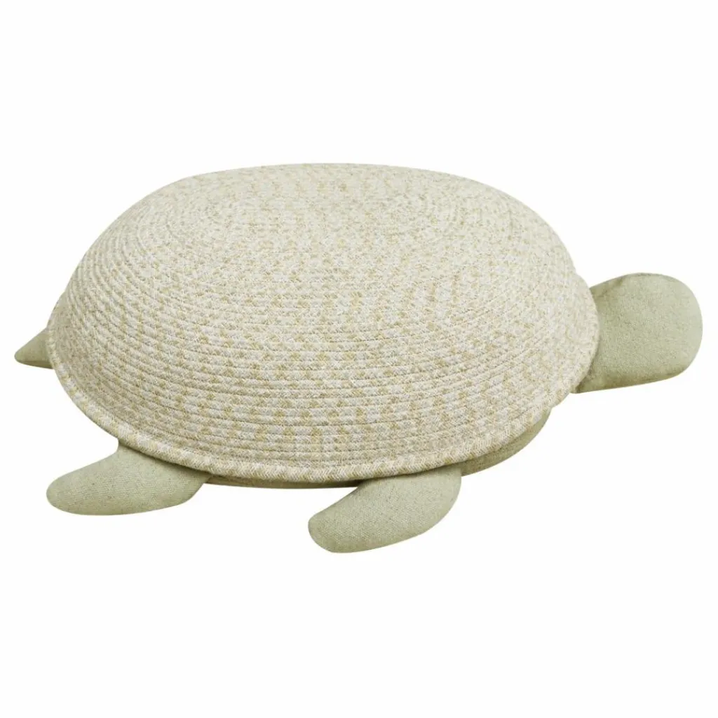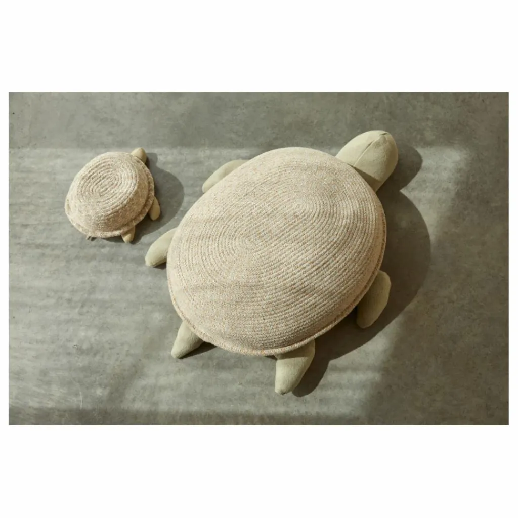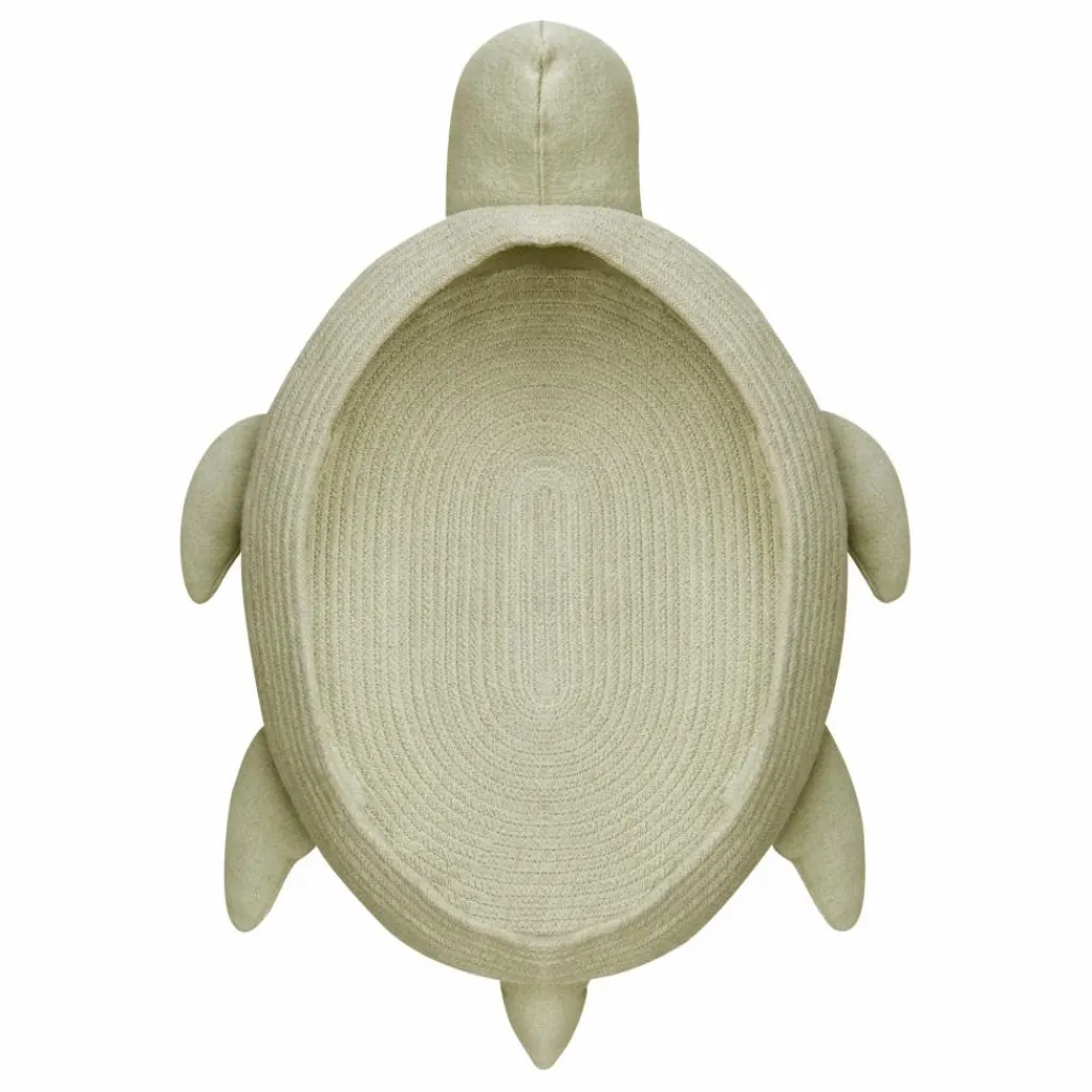 - En forme de tortue de mer, le panier Mama Turtle est fabriqué à la main à partir de cordons tressés constitués de fibres provenant de bouteilles PET recyclées mélangées à nos couleurs de coton. La partie inférieure du panier, représentant le corps de la tortue, est réalisée en cordelette vert olive, avec des pieds gonflés et une tête façonnée en toile de coton olive attachée. Sur le dessus, un couvercle en corde de couleurs mélangées forme la carapace de la tortue.