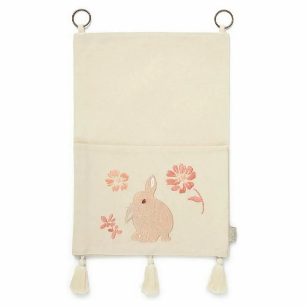 - Ajoutez du charme et de la fonctionnalité à la chambre de bébé ou d’enfant avec notre pochette murale décorative et pratique dans l’adorable thème Augusta. Fabriqué en toile épaisse certifiée GOTS, cet accessoire polyvalent offre un rangement pratique et une décoration élégante. Il est orné d’une fine broderie représentant un adorable petit lapin inspiré de notre imprimé Augusta bien-aimé, et comporte deux jolis pompons dans les coins inférieurs pour une charmante touche vintage. Facilement accrochée à l’aide d’anneaux métalliques, cette pochette murale est parfaite pour ranger les petits objets, qu’il s’agisse d’articles essentiels pour la table à langer, d’ustensiles pour le bureau de l’enfant, ou de jouets et autres trésors, tout en apportant un caractère douillet à la chambre de votre enfant.