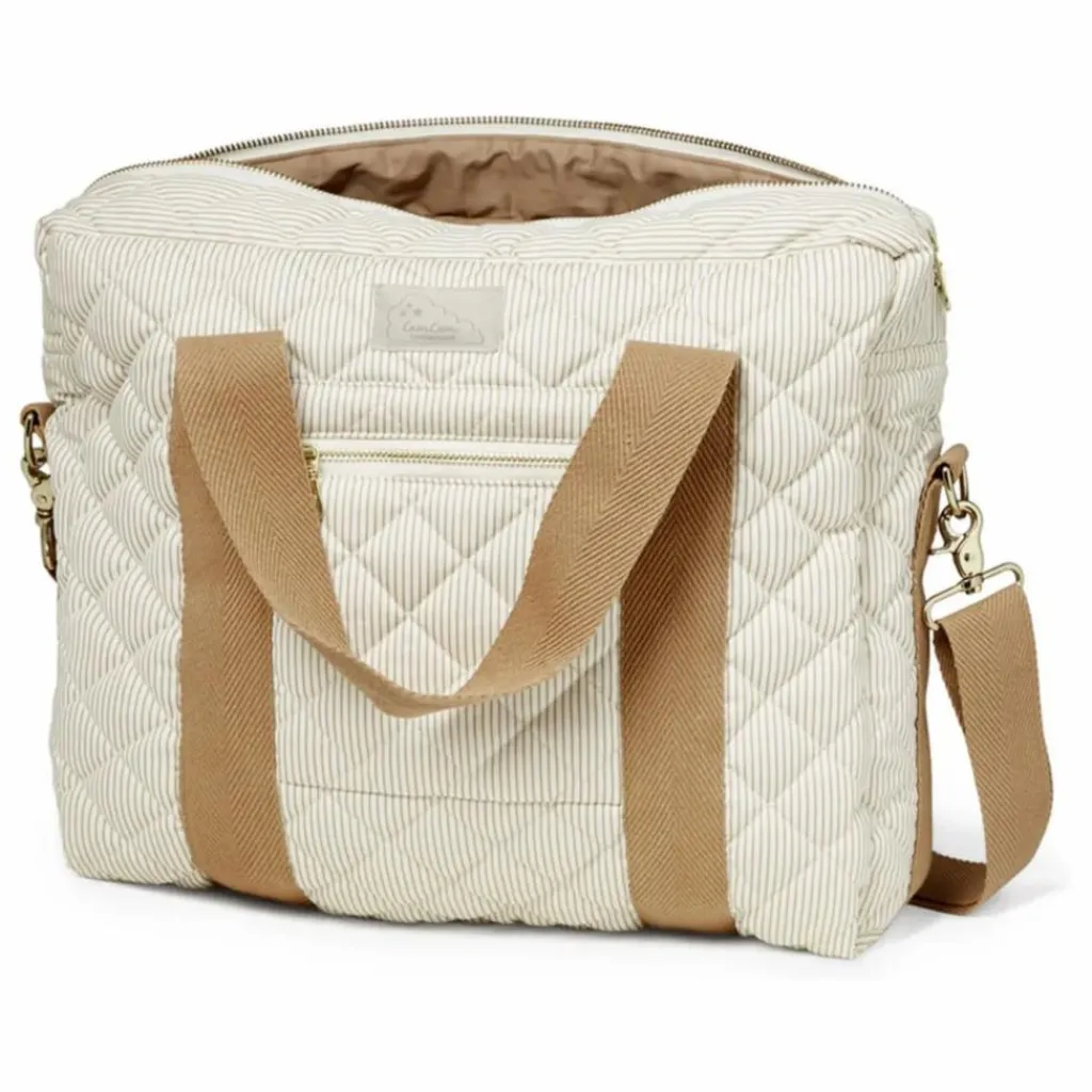 - Notre populaire sac à langer est doté d’un élégant matelassage et d’un revêtement hydrofuge à l’extérieur et à l’intérieur pour une protection et une longévité accrues. Le sac est doté de lourdes sangles, d’une bandoulière réglable et de deux petites poignées permettant de l’attacher à la poignée du landau ou de la poussette.