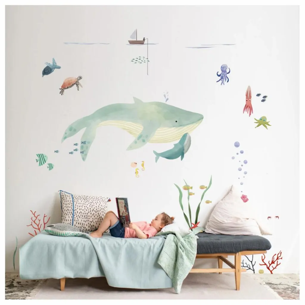 - La douceur de l’aquarelle de ce sticker géant nous transporte vingt mille lieues sous les mers.