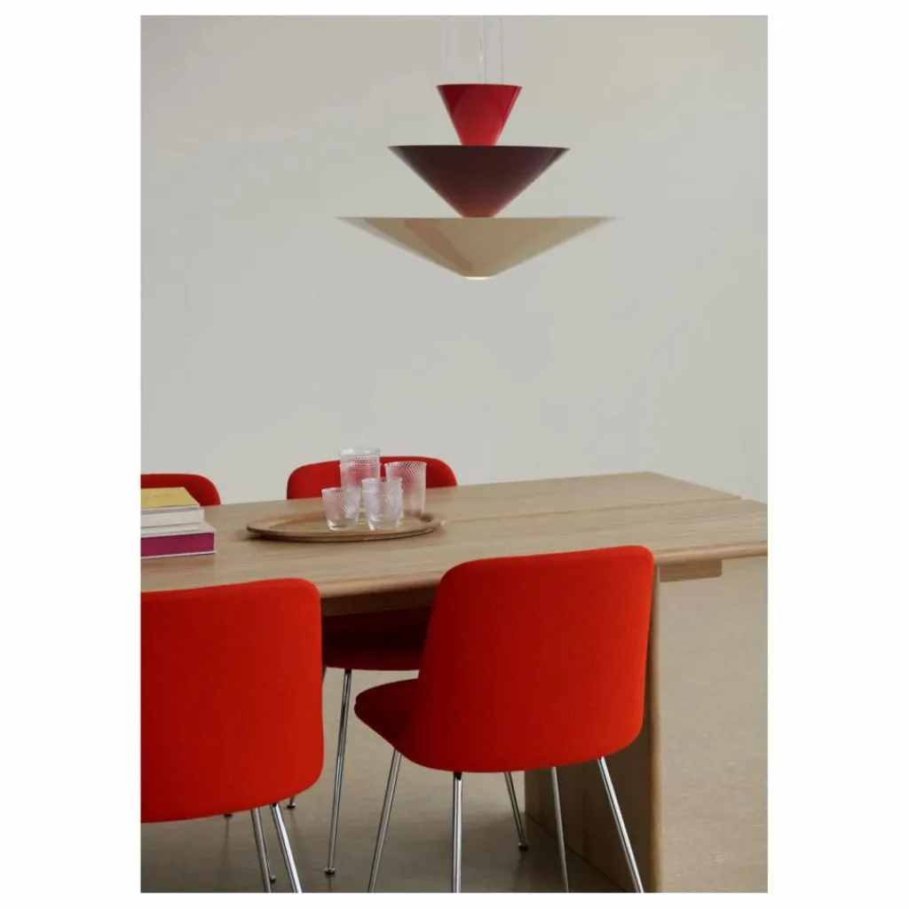 - S’inspirant du lustre Murano de Gio Ponti, le lustre Gio transmet la même expression saisissante tout en se concentrant sur les formes géométriques fondamentales et les combinaisons de couleurs vibrantes. Un design minimaliste avec une présence impressionnante, le lustre célèbre l’union des formes classiques et contemporaines en une seule déclaration cohérente.