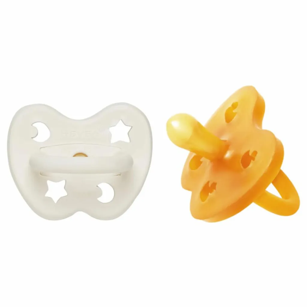 Ces deux tétines en caoutchouc naturel garantissent douceur au toucher et respectent le visage et les lèvres de votre bébé. Les formes amusantes découpées sur la face garantissent la sécurité de votre bébé tout en lui permettant de s’amuser !