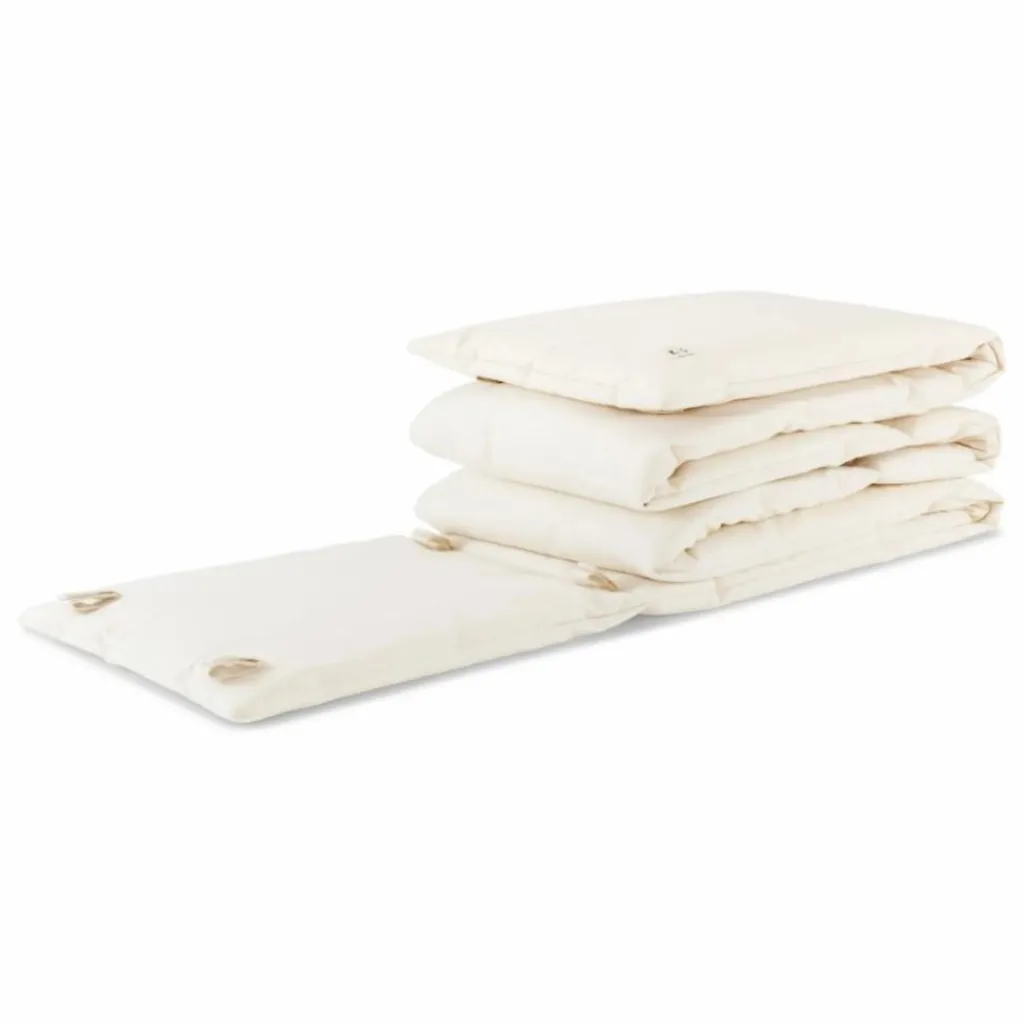 - Le tour de lit est spécialement conçu pour le lit de bébé Kai et s’adapte parfaitement à la forme incurvée du lit. Il est fabriqué en coton 100% biologique et en tissu robuste. Fabriqué en 100% coton biologique avec un tissu robuste, le tour de lit se tient fermement le long des extrémités incurvées du lit Kai. Le tour de lit peut être facilement attaché et fixé avec des bandes velcro. Il est disponible en deux couleurs parfaitement assorties au berceau Kai : crème et blanc. Instructions de nettoyage : Lavage délicat à 30 degrés