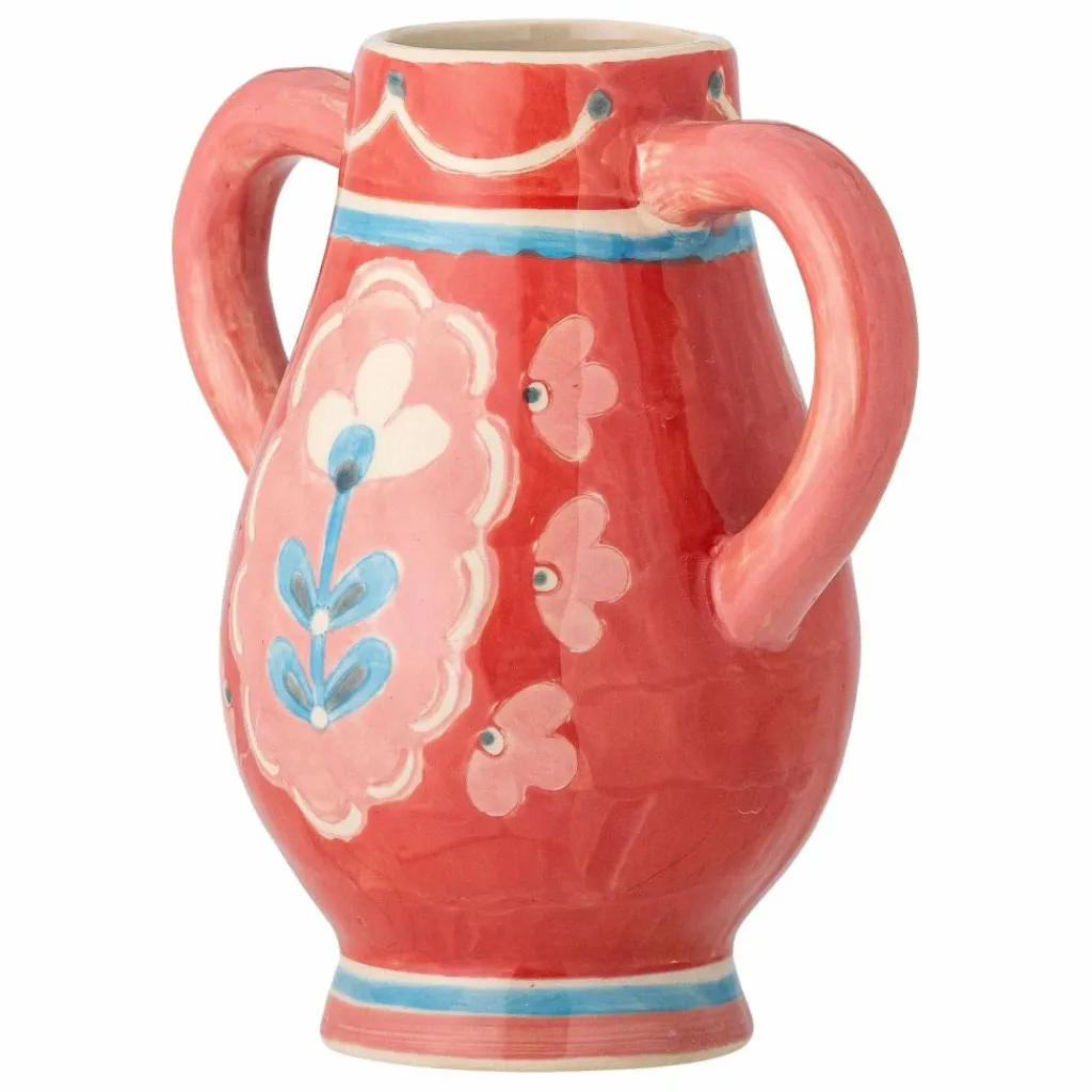 - Le Vase Odina de Bloomingville est orné d’une couleur rouge profonde et d’un motif floral finement peint à la main dans des nuances de bleu, rose et blanc. Le vase sert d’élément décoratif pour la maison, qu’il soit seul ou avec des fleurs à l’intérieur. La nature peinte à la main rend chaque vase unique.