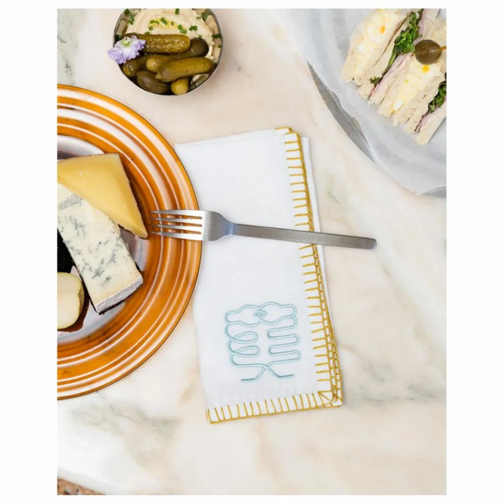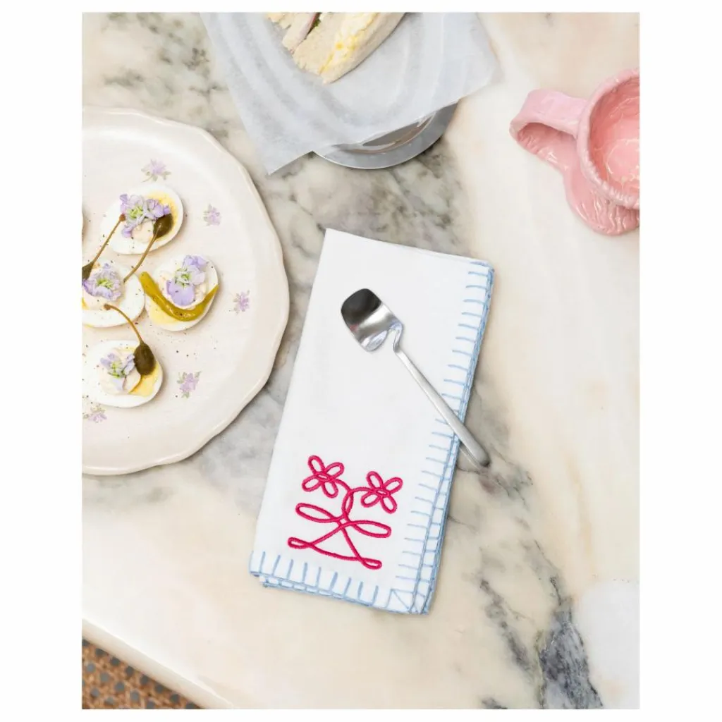 - Les serviettes Bouquet sont une floraison de créativité et de design réfléchi. Chaque serviette est ornée d’une fleur brodée unique, créée en collaboration avec l’artiste argentine María Centeno, et est cousue à la main selon la technique du kantha sur le pourtour.