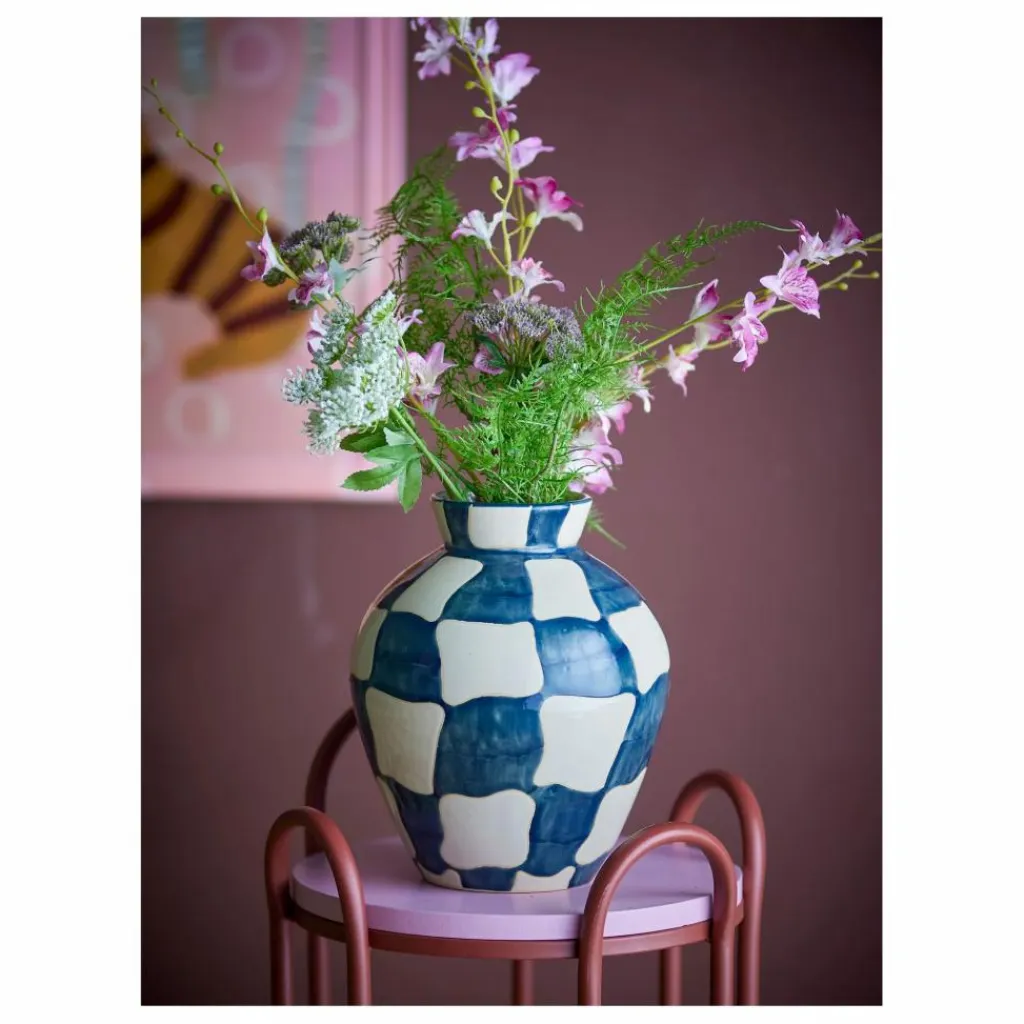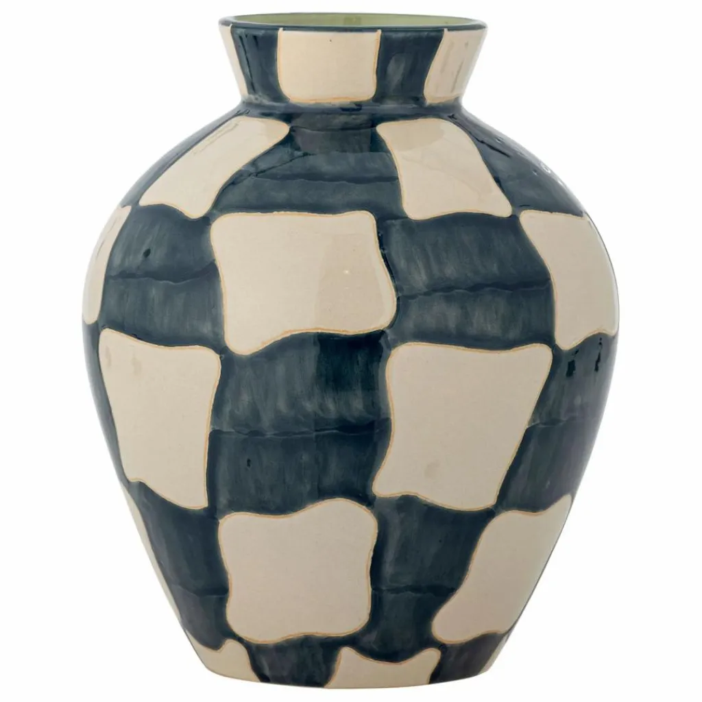 - Le Vase Check de Bloomingville est fabriqué en grès et peint à la main avec un motif graphique dans des tons bleus et clairs. La décoration peinte à la main fait que chaque Vase est unique avec de légères variations dans le motif et la couleur.
