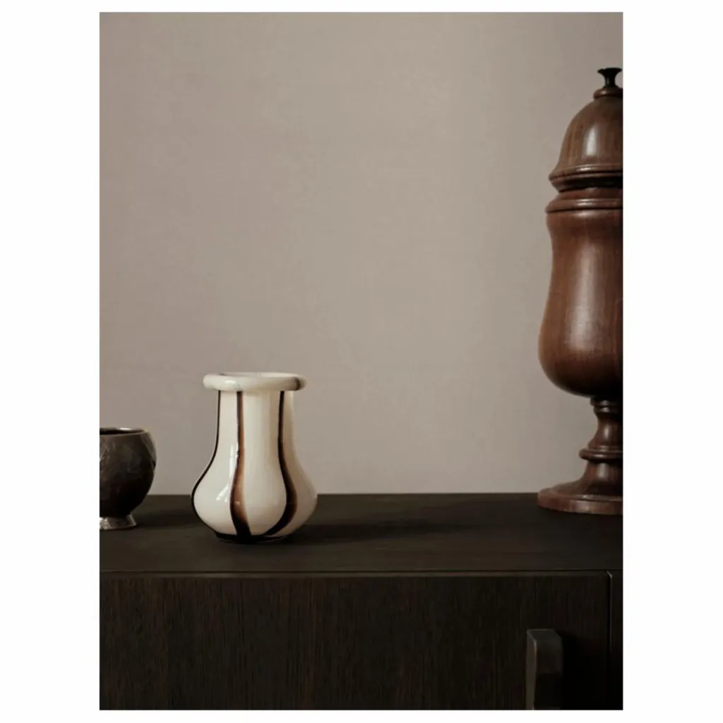 Le vase Riban, une charmante fusion de tradition et d’art, s’inspire de la fabrication artisanale classique des bonbons au sucre. Fabriquée à la main à partir de verre, chaque pièce est une création unique, mettant en valeur les talents de l’artisan qui façonne et intègre soigneusement les lignes dans le corps du vase. Son design, qui rappelle les délices de la confiserie, affiche un charme ludique et fantaisiste.