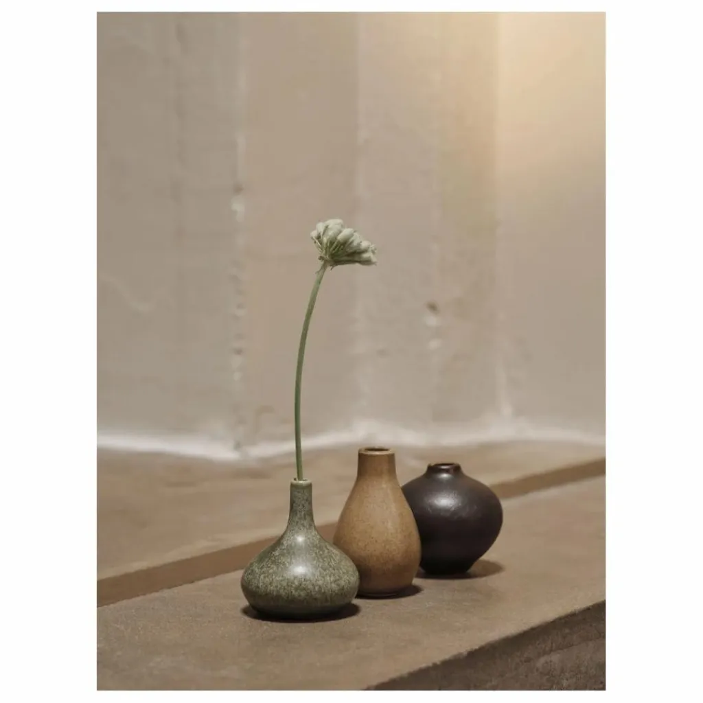 - Créez une nature morte décorative avec la famille des mini-vases Komo. Prolongeant la série, ce trio de vases charmants présente des formes subtilement arrondies et potelées qui exsudent chaleur et fantaisie. Placez-les sur votre bibliothèque préférée aux côtés d’autres objets précieux, sur la table avec des fleurs à tige unique ou placez un plateau en dessous pour les utiliser comme bâtonnets d’encens.
